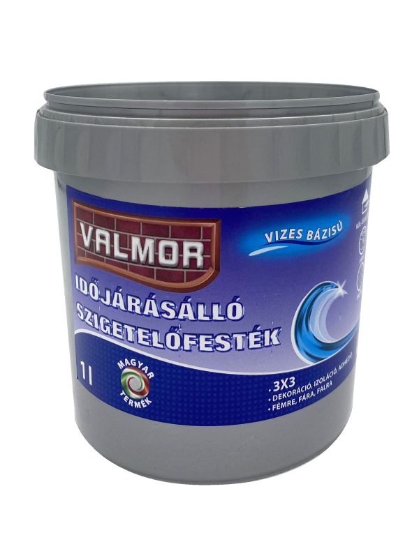 Alkalmazás: VALMOR Időjárásálló- és Szigetelőfesték vízzel hígítható kül- és beltérben használható rugalmas festék. 3×3 funkcióban alkalmazható: dekorációra (jól színezhető és mindenre tapad), izolációra (szigetelés és védelem), adhézióra (tapadóhíd, alapozó funkció-ra). A bevonat UV-álló, vízálló, enyhe sav és lúgálló, rugalmas. Tökéletesen megtapad szinte minden, új és régi, kezeletlen vagy már festett felületen egyaránt.